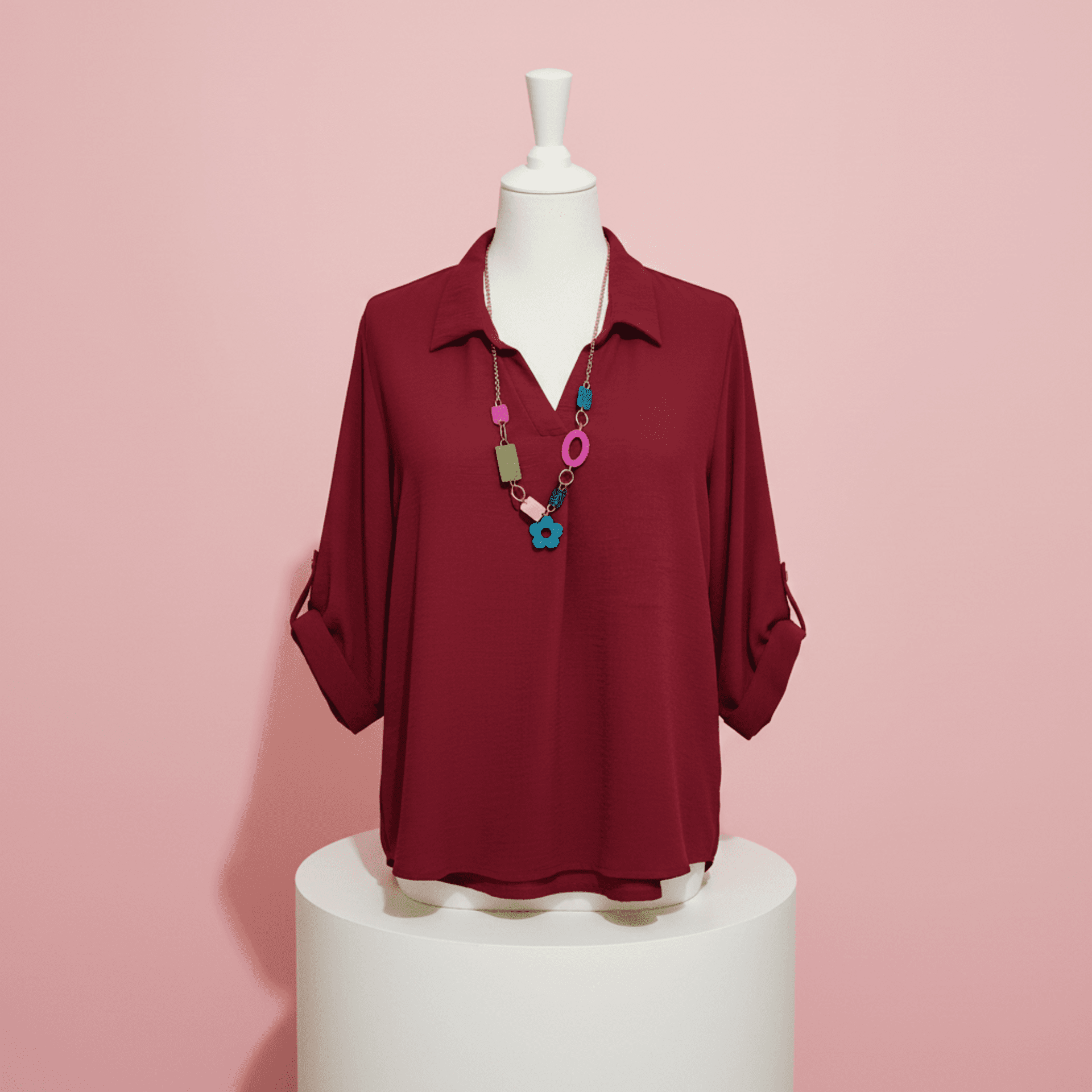 BLUSA FRUNCIDA AJUSTABLE BURDEOS